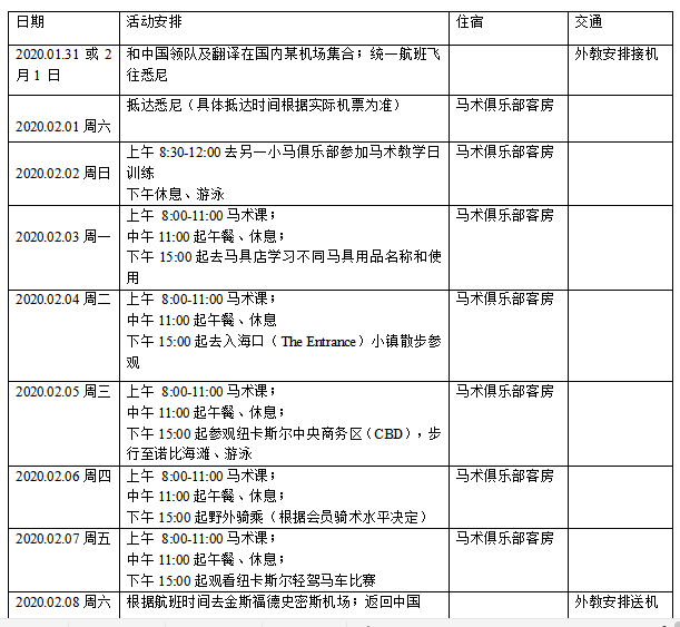 2. 获奖会员将于寒假期间(2020年2月1-8日)赴澳洲参加马术营,学习马术、访问当地马术俱乐部、参观马术比赛、旅游等。(行程有可能根据实际情况有所调整,以CPC通知为主)